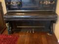 Piano vertical alemán, marca Carl Ecke, madera, color negro, portavelas de bronce, teclas de marfil, alto 130 y ancho 150 cm. Buen estado, una joya...